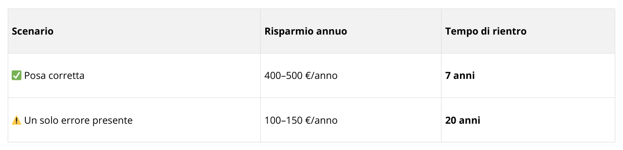 Se chi fa la posa commette anche uno solo dei 3 errori di cui ti ho parlato, il risparmio scende a 100-150 € annui.